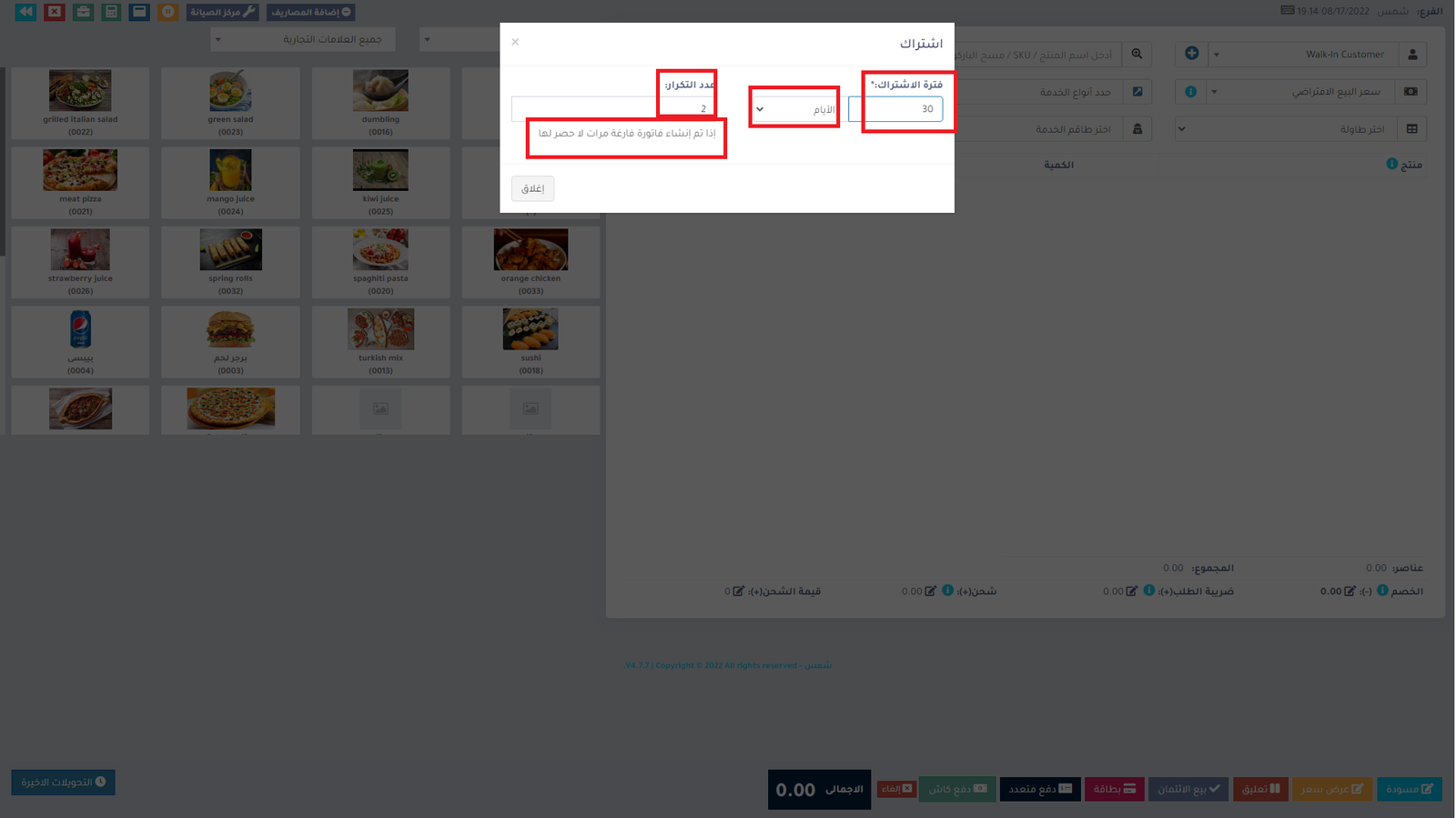 - يمكن إضافة الاشتراكات في كل من مبيعات -> نقاط البيع أو شاشة المبيعات العادية(نقطة بيع).